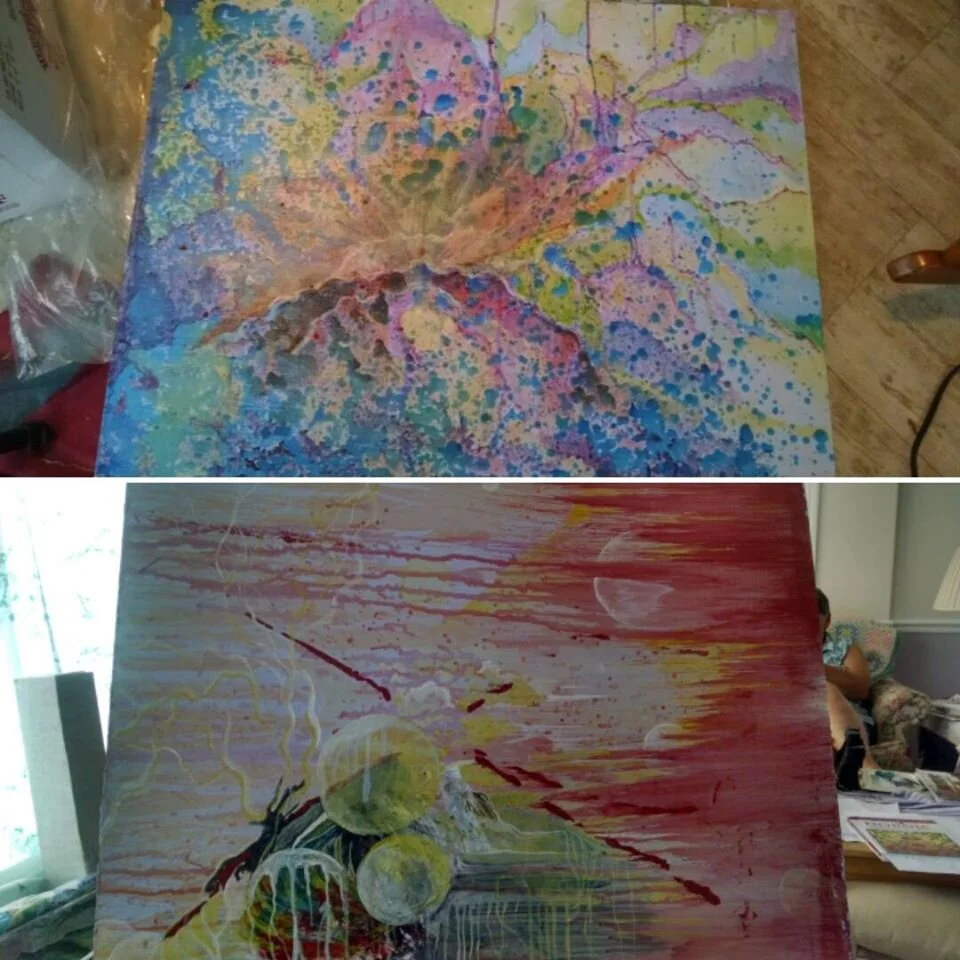 Abstract Under Water, latex on canvas board, 18”x24”, $100
